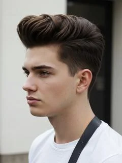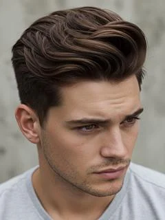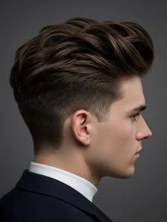 Medium-length top (4–5 inches) styled into a voluminous “pomp,” shorter tapered or faded sides/back. A retro style with a softer, textured 2025 update.